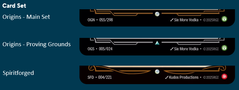 Every Riftbound card has a set code printed on it that tells you which release the card came from.